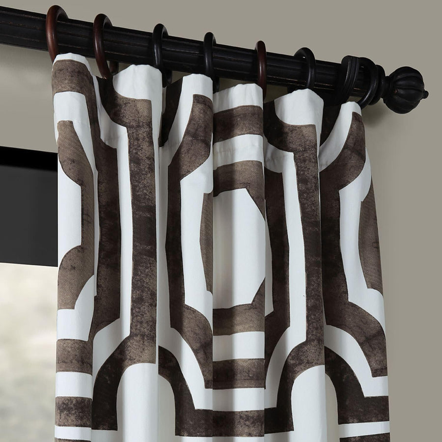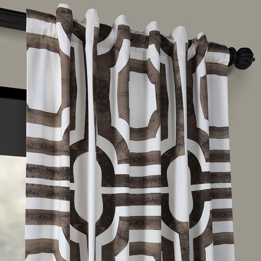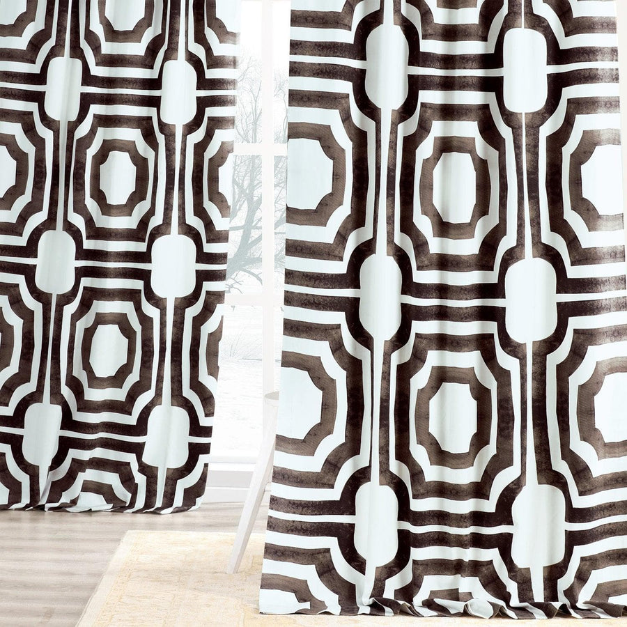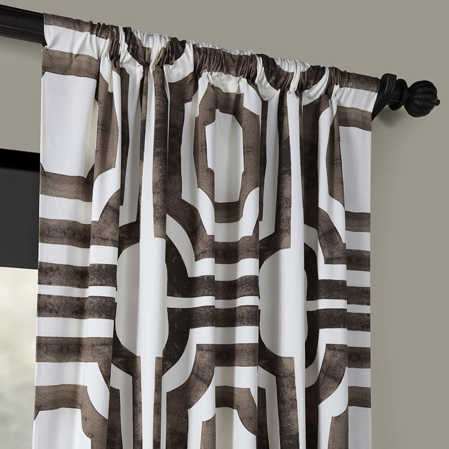 Mecca Brown Geometric Printed Cotton Room Darkening Curtain