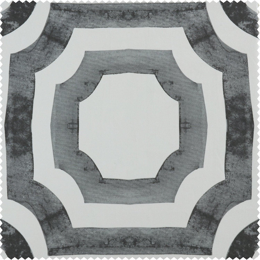 - Mecca Steel is a bold modern geometric print in gradient grey tones on an off-white background.