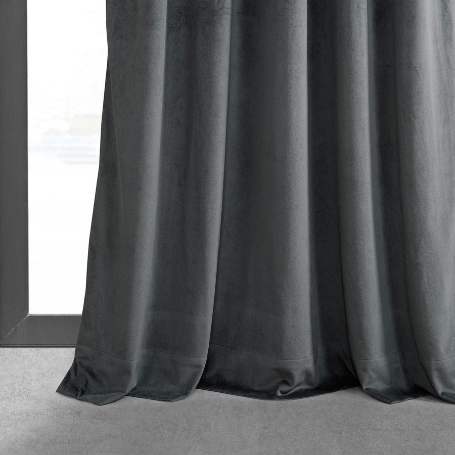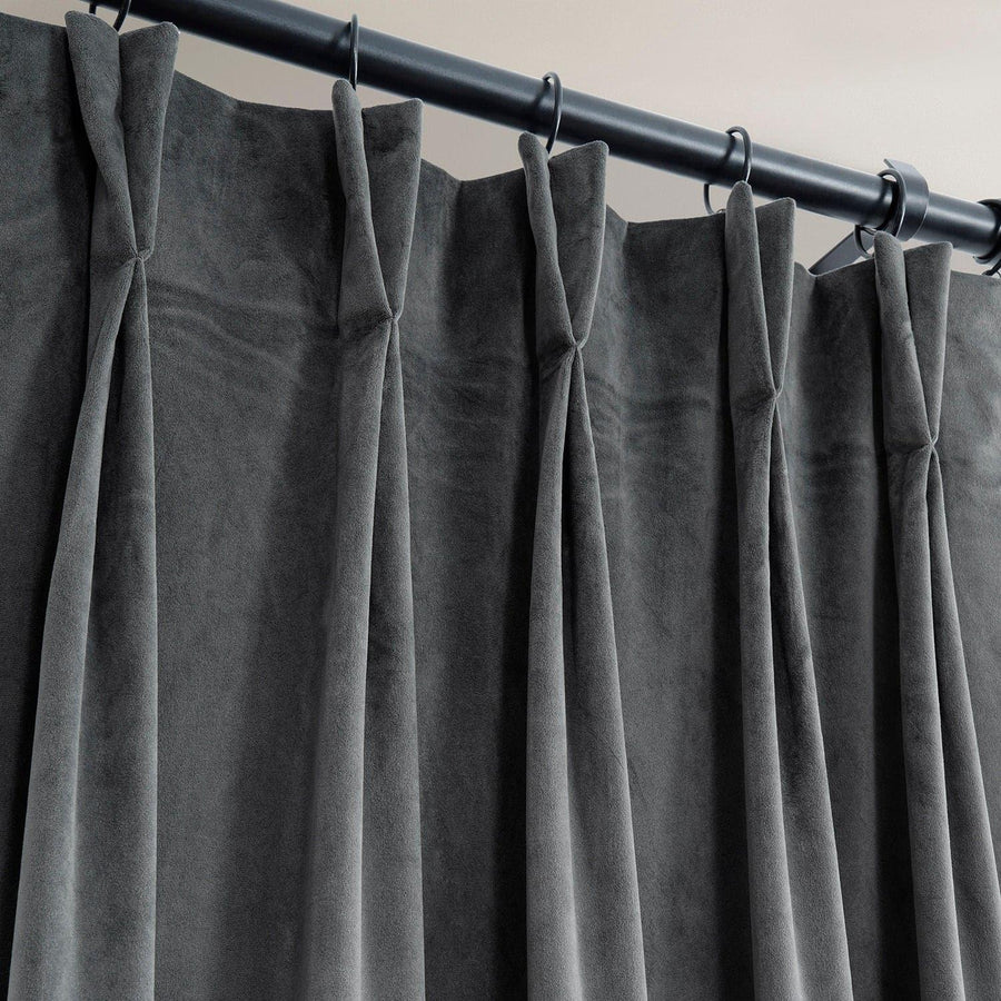Neutral Grey French Pleat Signature Velvet Blackout Curtain