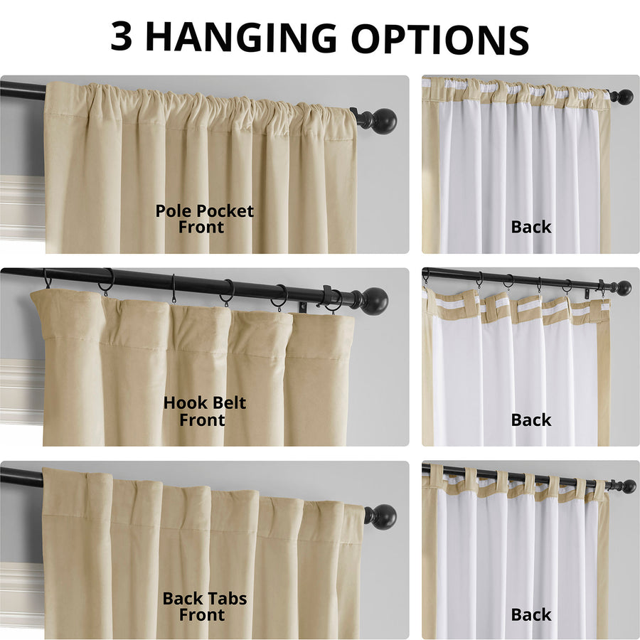 - Our most versatile top treatment, these panels can be sheered on a rod using the pocket, hung using the back tabs for a fixed ripple look, or attached to rings using the hook belt and drapery pins. The pocket will accommodate a pole up to 1 1/2" in diameter.