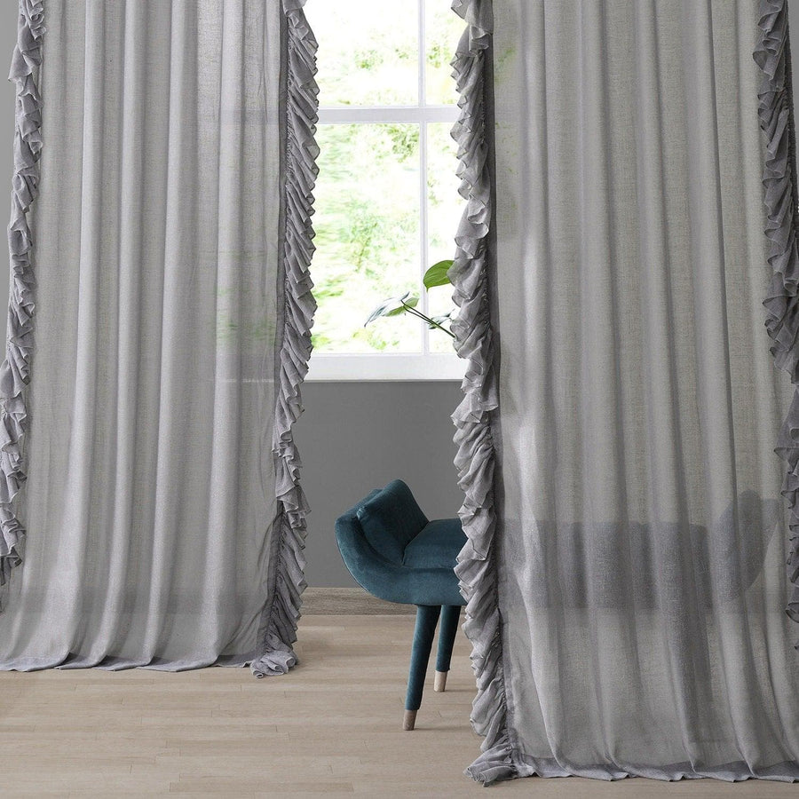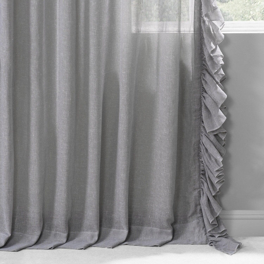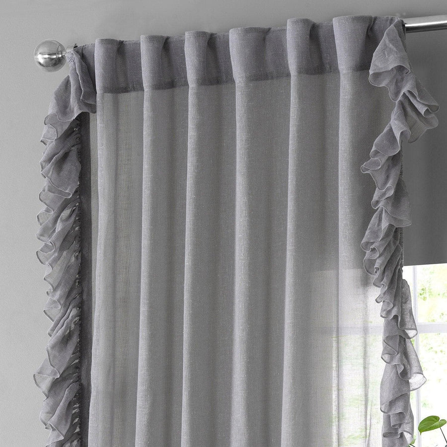 Nickel Ruffled Faux Linen Sheer Curtain