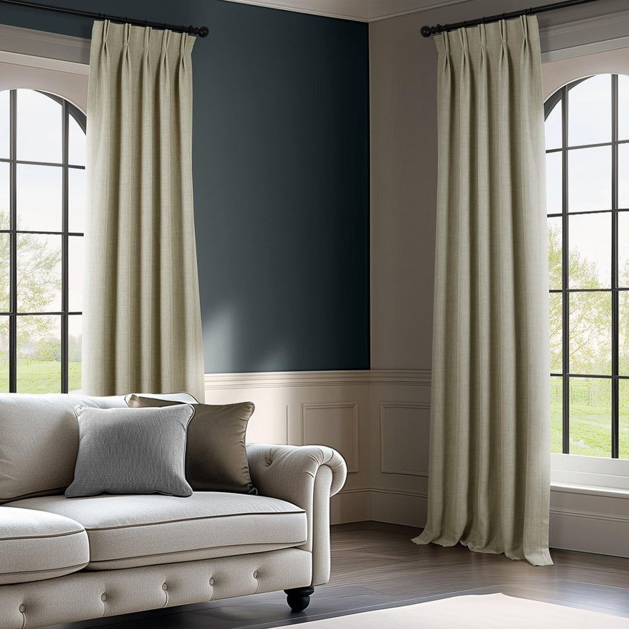 Oatmeal French Pleat Textured Faux Linen Room Darkening Curtain