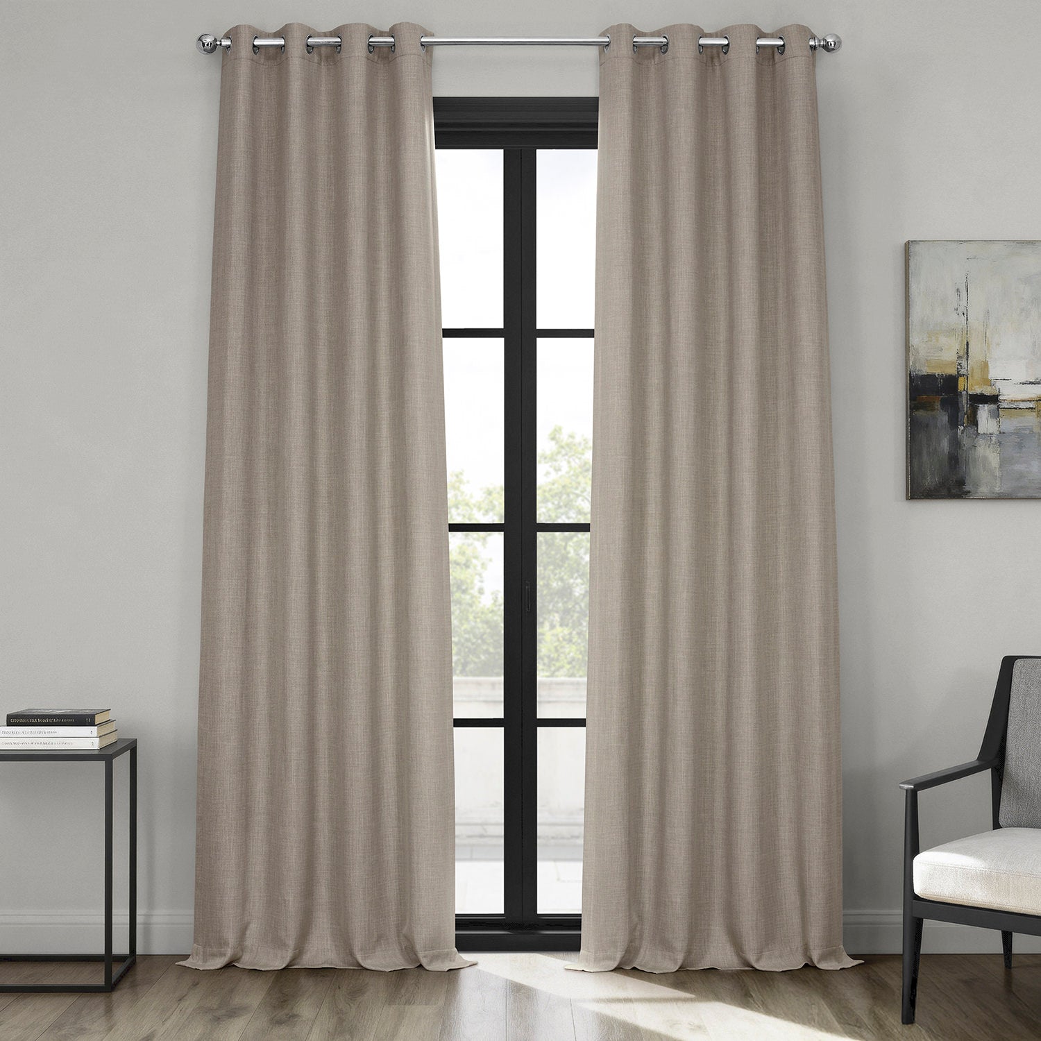 Oatmeal Grommet Textured Faux Linen Room Darkening Curtain