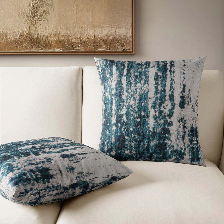 Ocean Blue Abstract Textured Printed Cotton Cushion Covers - Pair