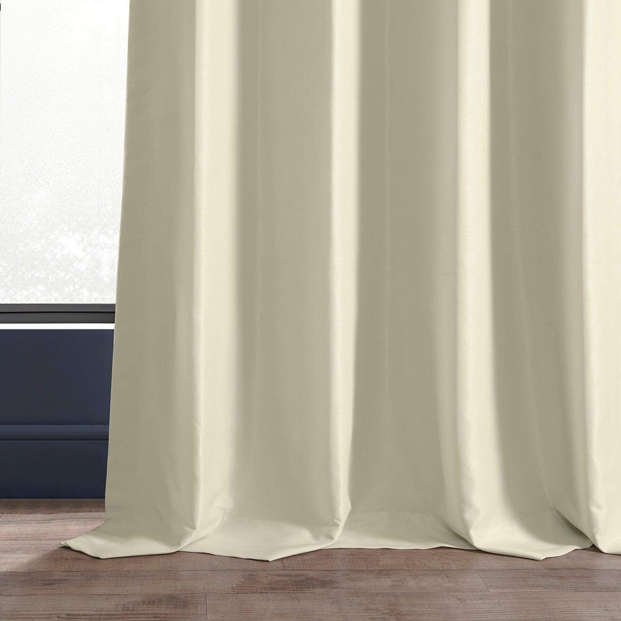 Off White Ruched Vintage Textured Faux Dupioni Silk Curtain