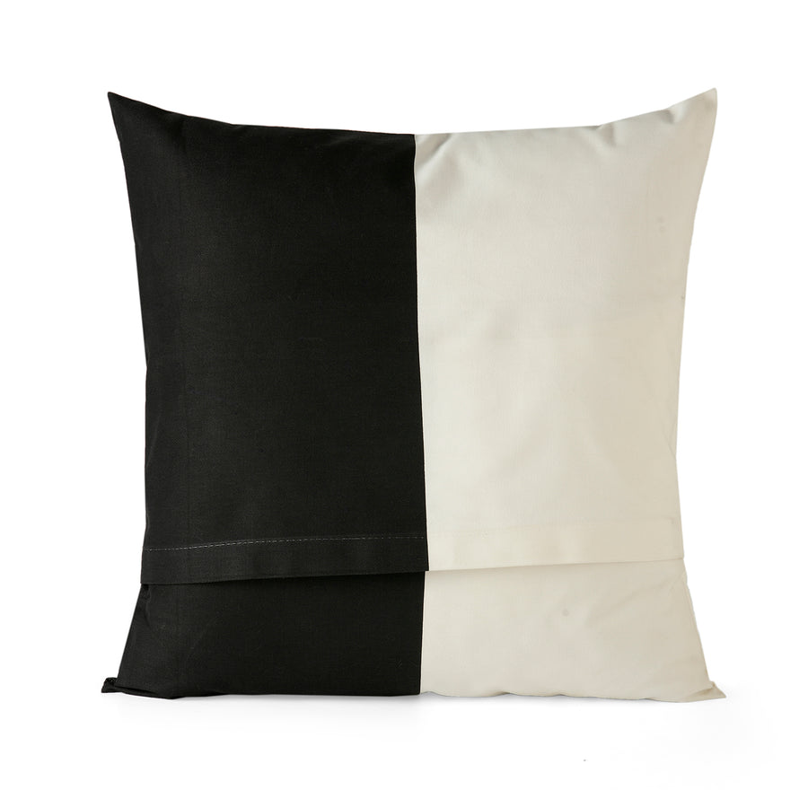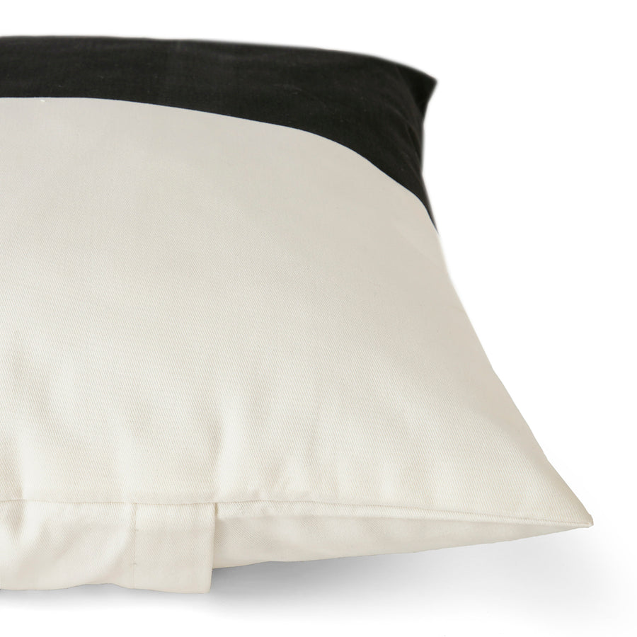 Onyx Black & Off White Striped Printed Cotton Cushion Covers - Pair