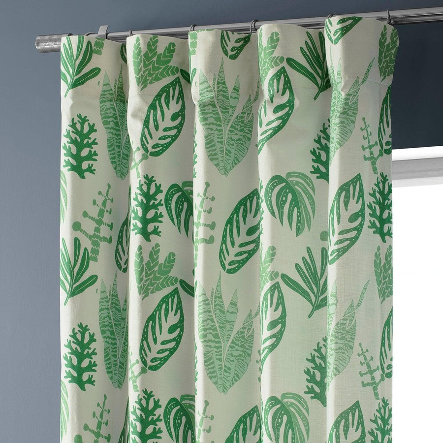 Palm Beach Green Floral Textured Printed Cotton Curtain