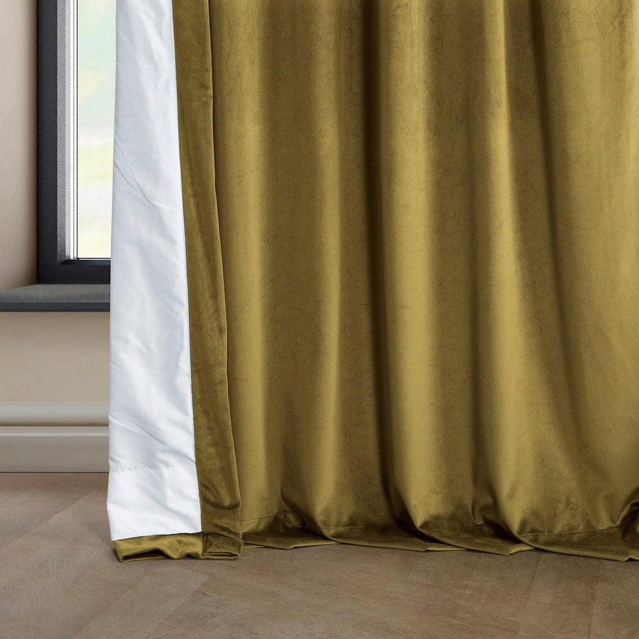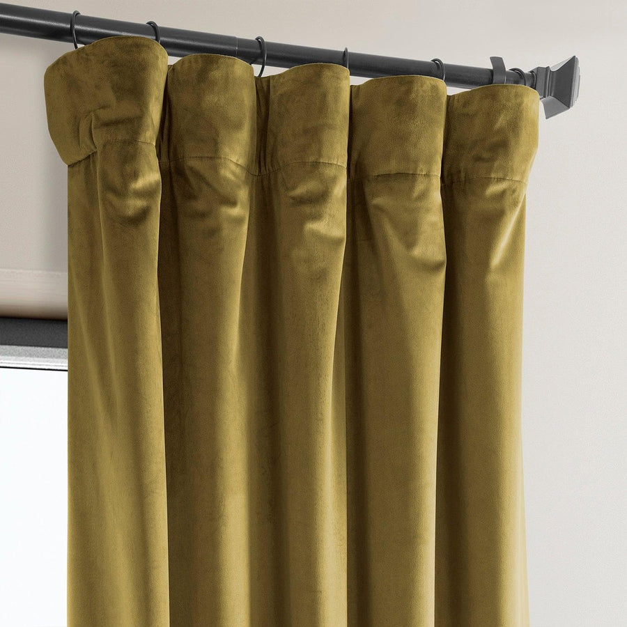 Peat Green Heritage Plush Velvet Room Darkening Curtain