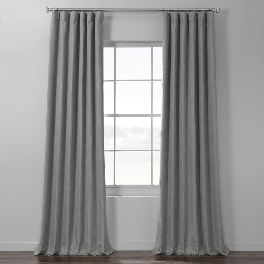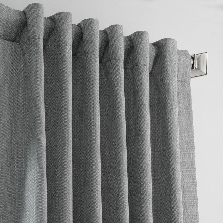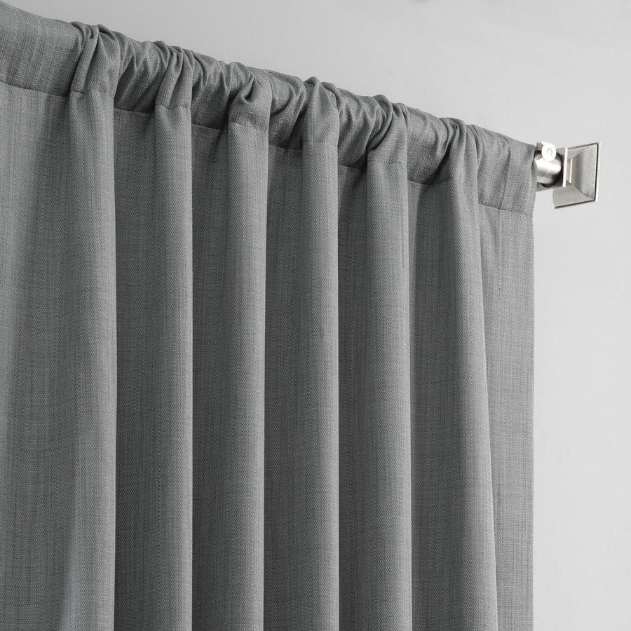 Pebble Grey Textured Italian Faux Linen Hotel Blackout Curtain