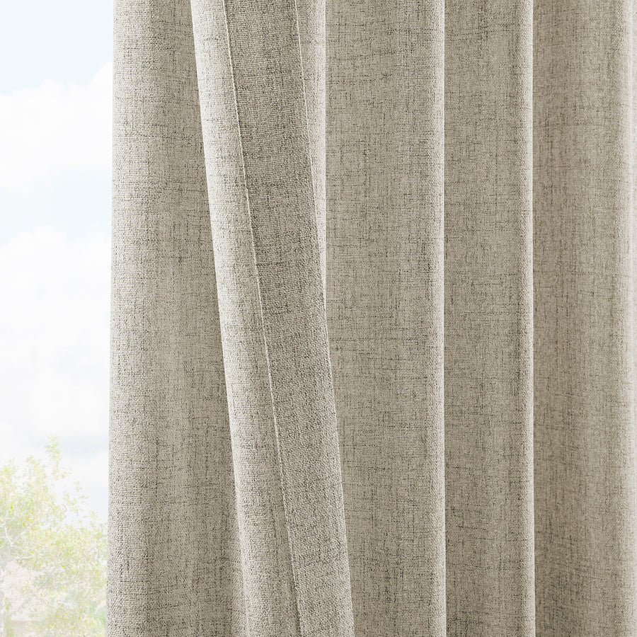 - Rustic Oatmeal is light greige and dark greige sheer. This sheer pair of drapes are unlined and has no backing.