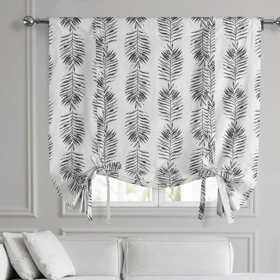 Sago Black Ink Floral Printed Cotton Room Darkening Tie-Up Window Shade