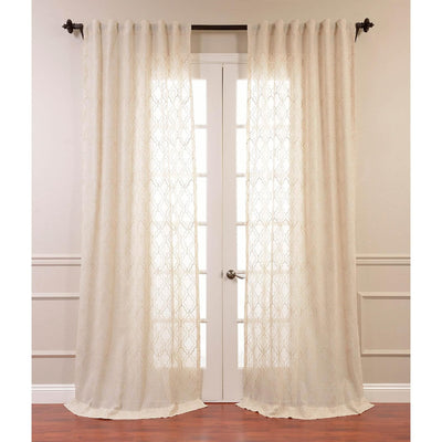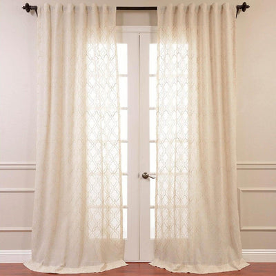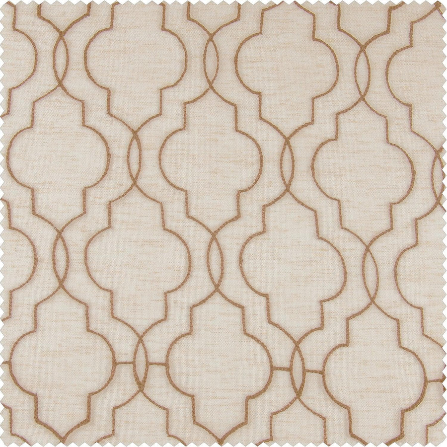 Saida Natural Geometric Embroidered Patterned Faux Linen Swatch