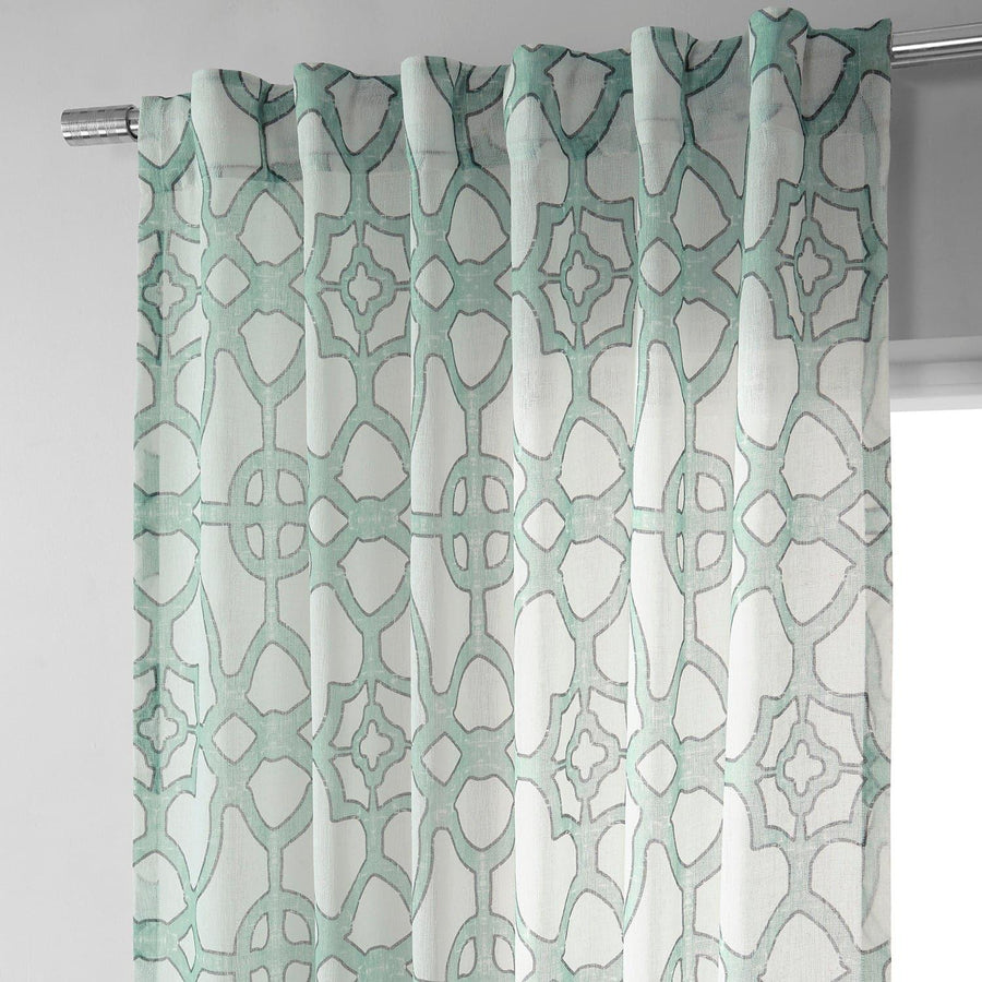 Zoom SeaGlass Blue Printed Sheer Curtain - HalfPriceDrapes.com