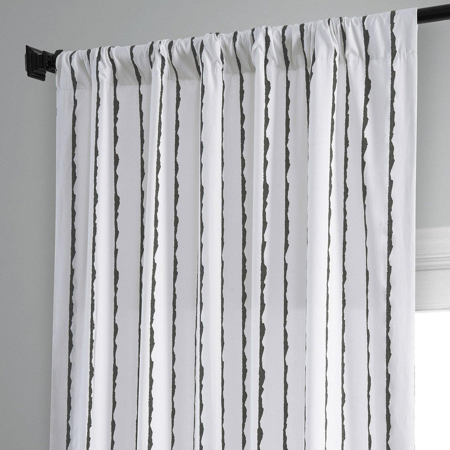 Sharkskin Black Striped Printed Cotton Room Darkening Curtain