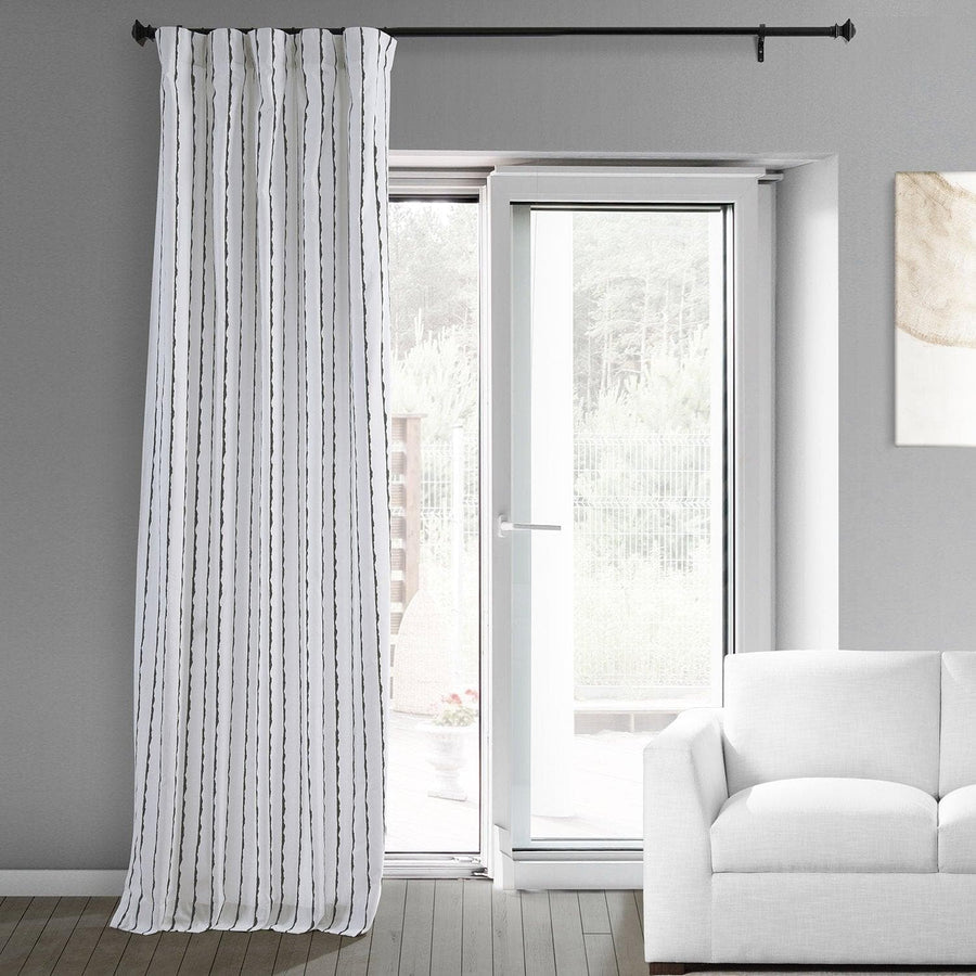 Sharkskin Black Striped Printed Cotton Custom Curtain