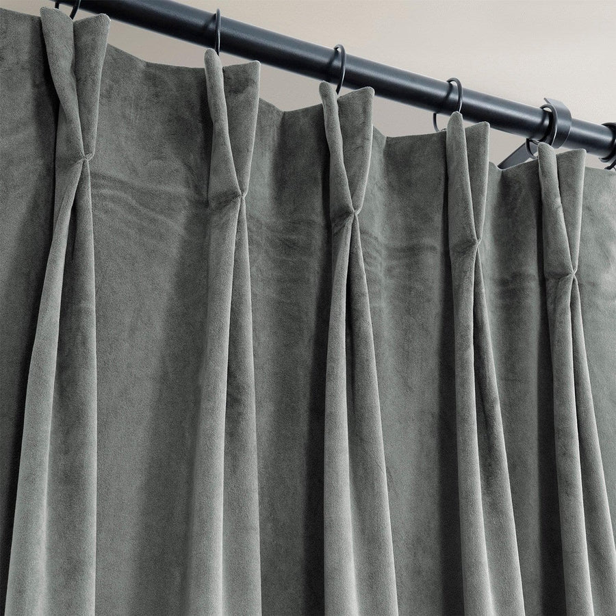 Silver Grey French Pleat Signature Velvet Blackout Curtain