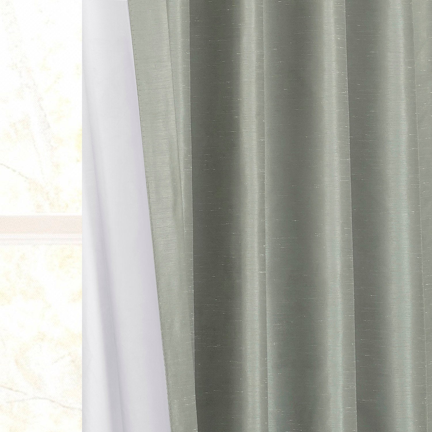 • Vintage Silver is non-metallic light silver grey with slubs scattered throughout. This iridescent silk-look curtain is lined with off white blackout fabric.