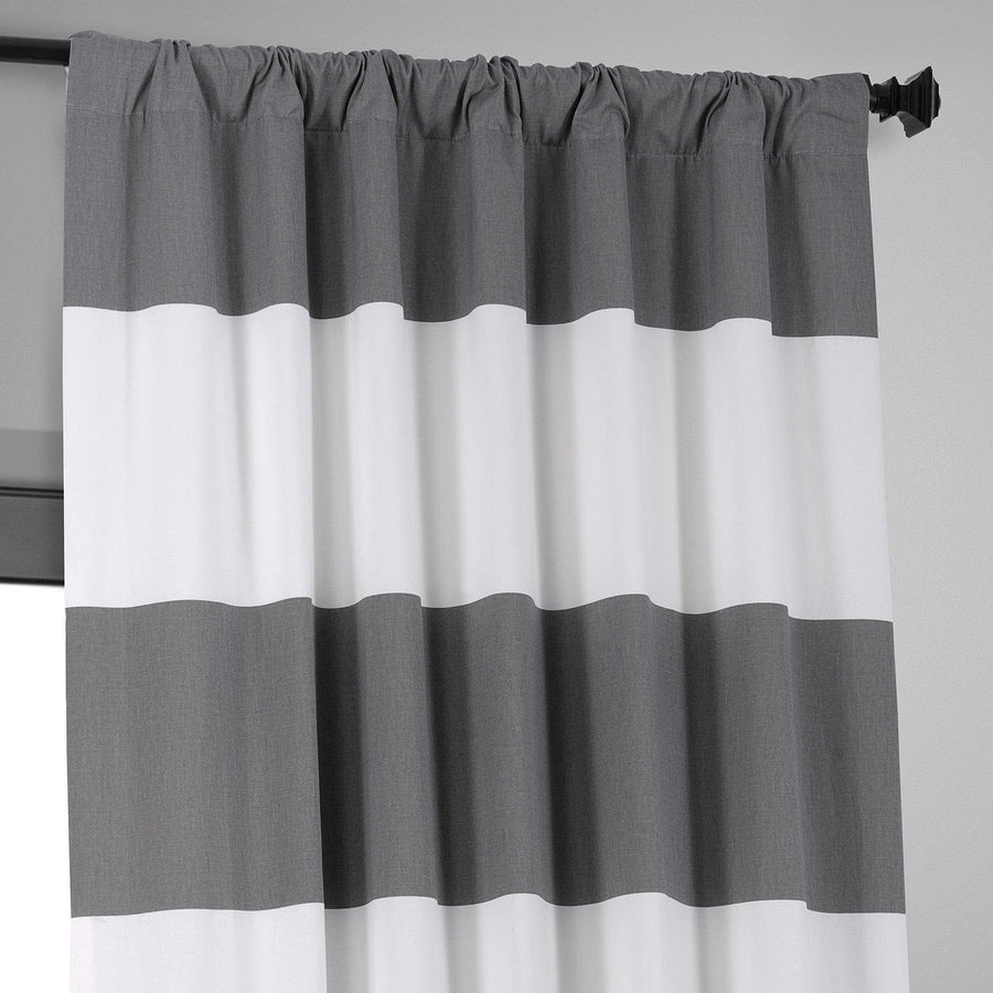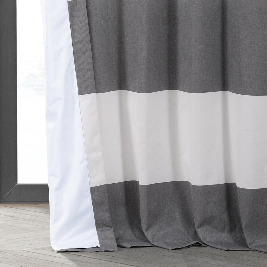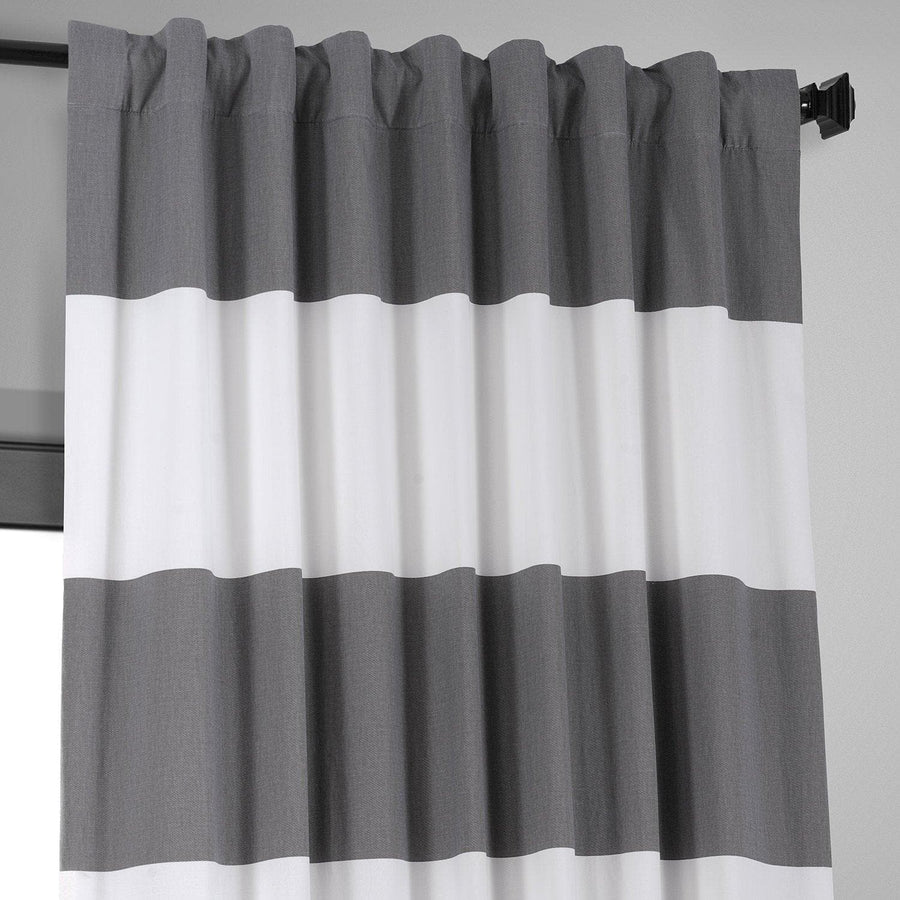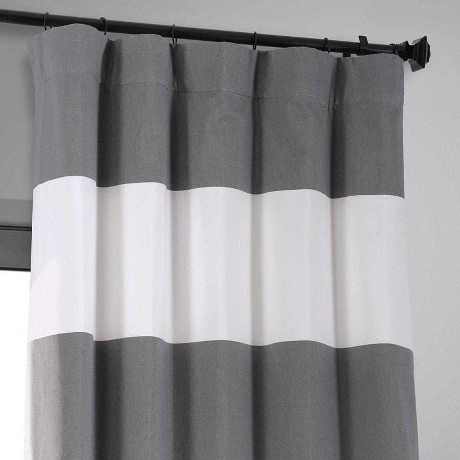 Zoom Slate Grey & Off White Horizontal Striped Printed Cotton Hotel Blackout Curtain - HalfPriceDrapes.com