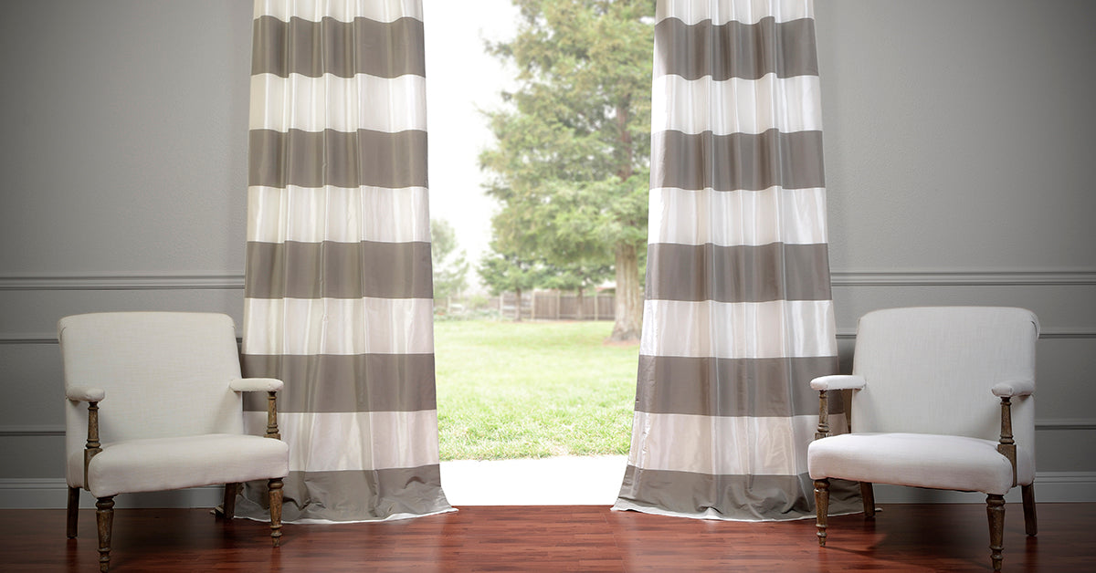 Slate Grey & Off White Horizontal Striped Printed Cotton Custom Curtain