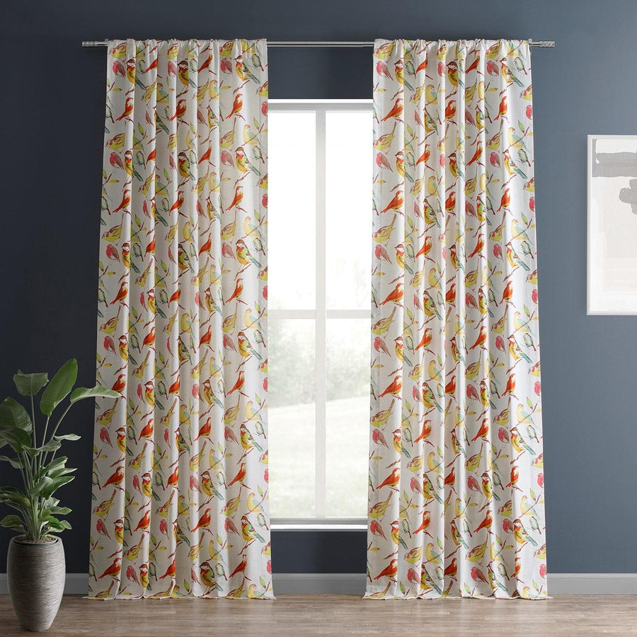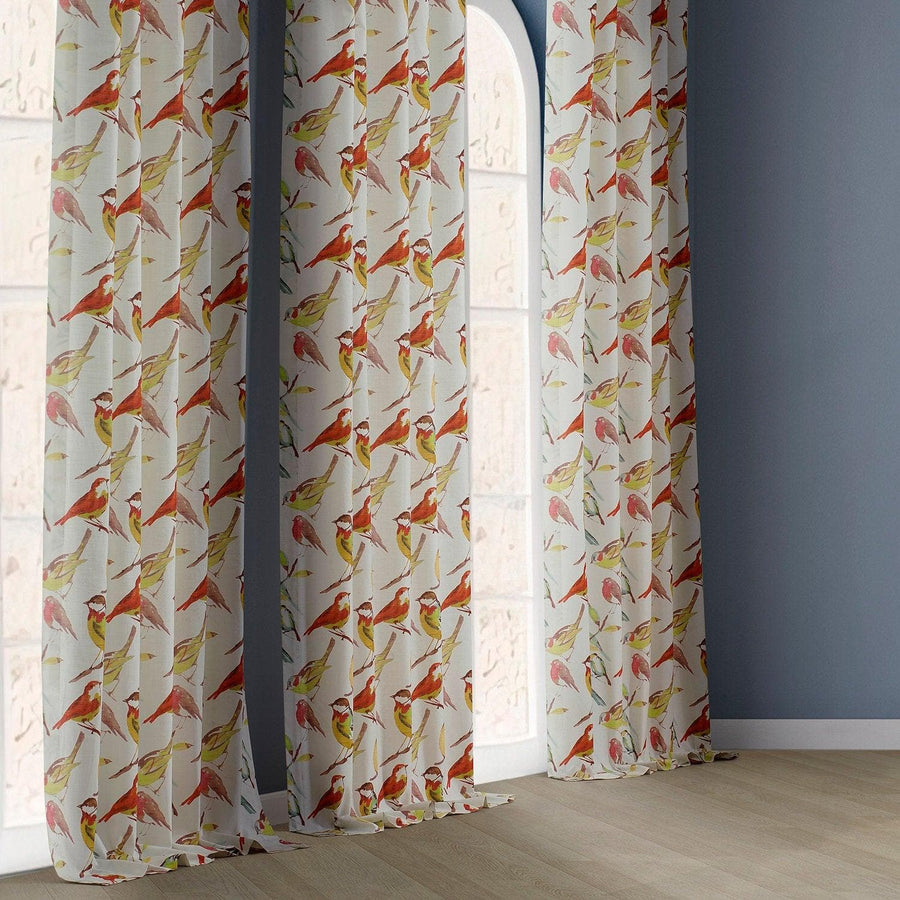 Songbird Multicolor Emblem Textured Printed Cotton Curtain
