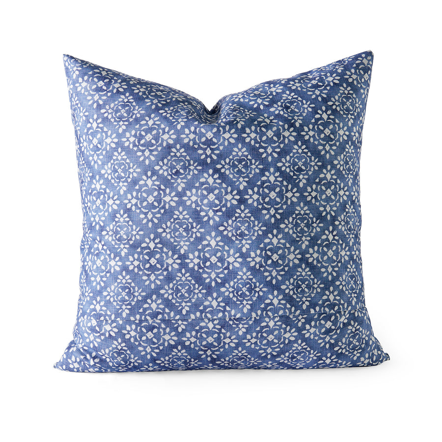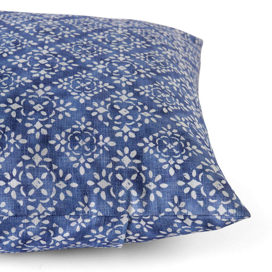 - Splash Indigo is a white dot batik inspired diamond motif on an inky blue background field. This 100% Textured Cotton Cushion Cover pair comes as two cushion covers and fits a standard 18" x 18".