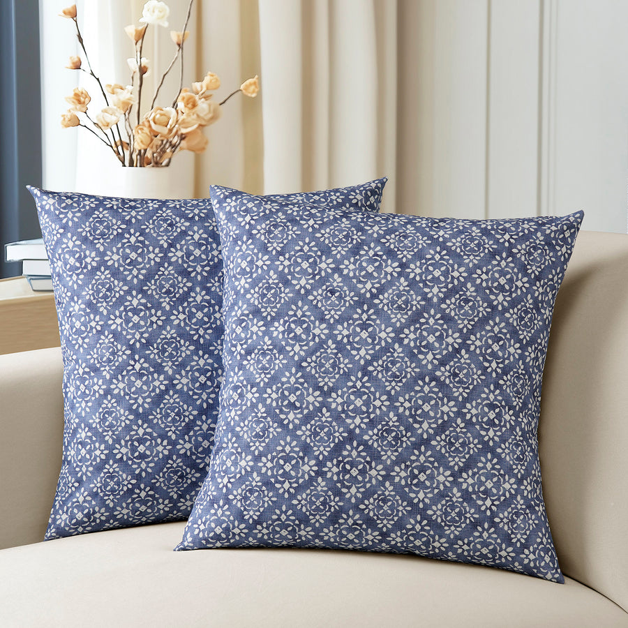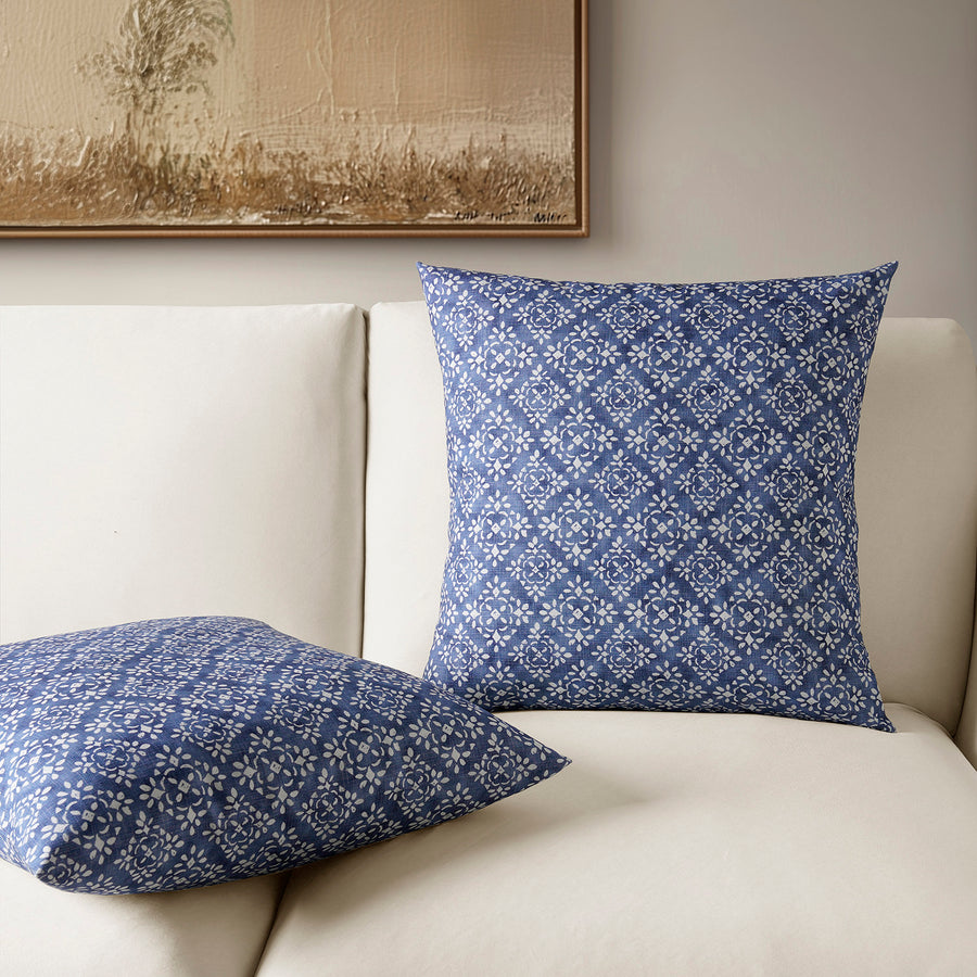 Splash Indigo Geometric Textured Printed Cotton Cushion Covers - Pair