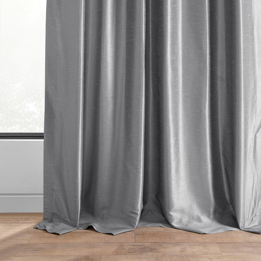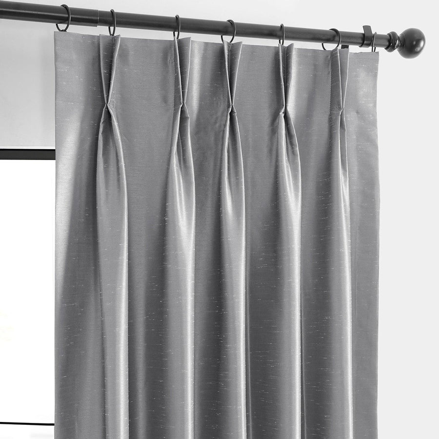Storm Grey French Pleat Vintage Textured Faux Dupioni Silk Blackout Curtain