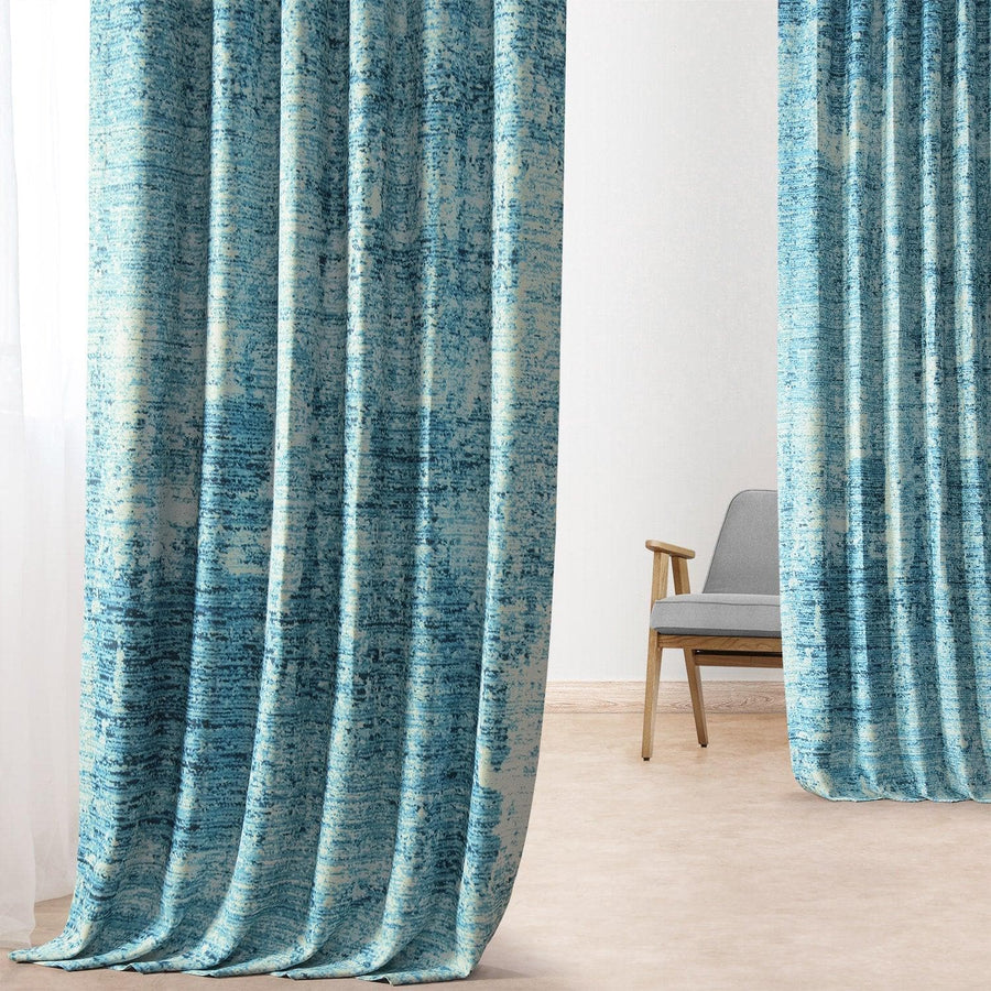 Strata Blue Abstract Printed Faux Linen Room Darkening Curtain