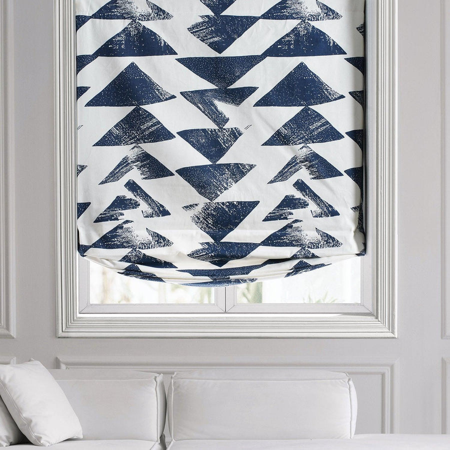Triad Indigo Geometric Printed Cotton Roman Shade