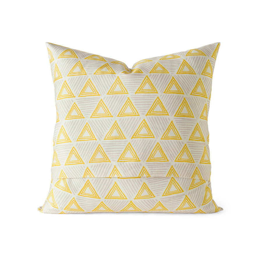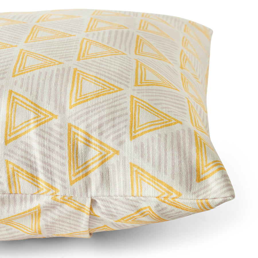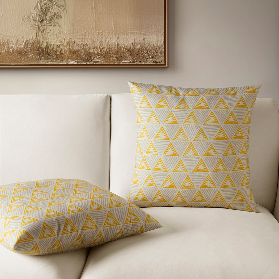 - Trillian Marigold is a sunshine bright gold inspired geometric on neutral tones. Triangles often symbolize the three main elements of nature: land, sea, and sky. This 100% Textured Cotton Cushion Cover pair comes as two cushion covers and fits a standard 18" x 18".