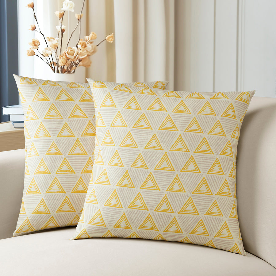 Trillian Gold Geometric Textured Printed Cotton Cushion Covers - Pair