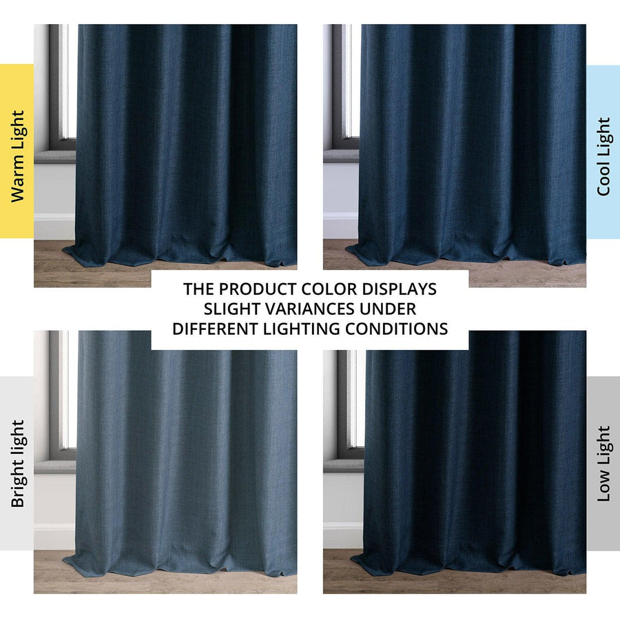 Voyager Blue Faux Linen Hotel Blackout Curtain