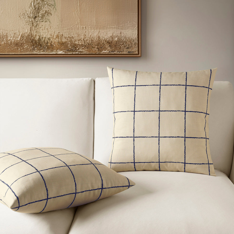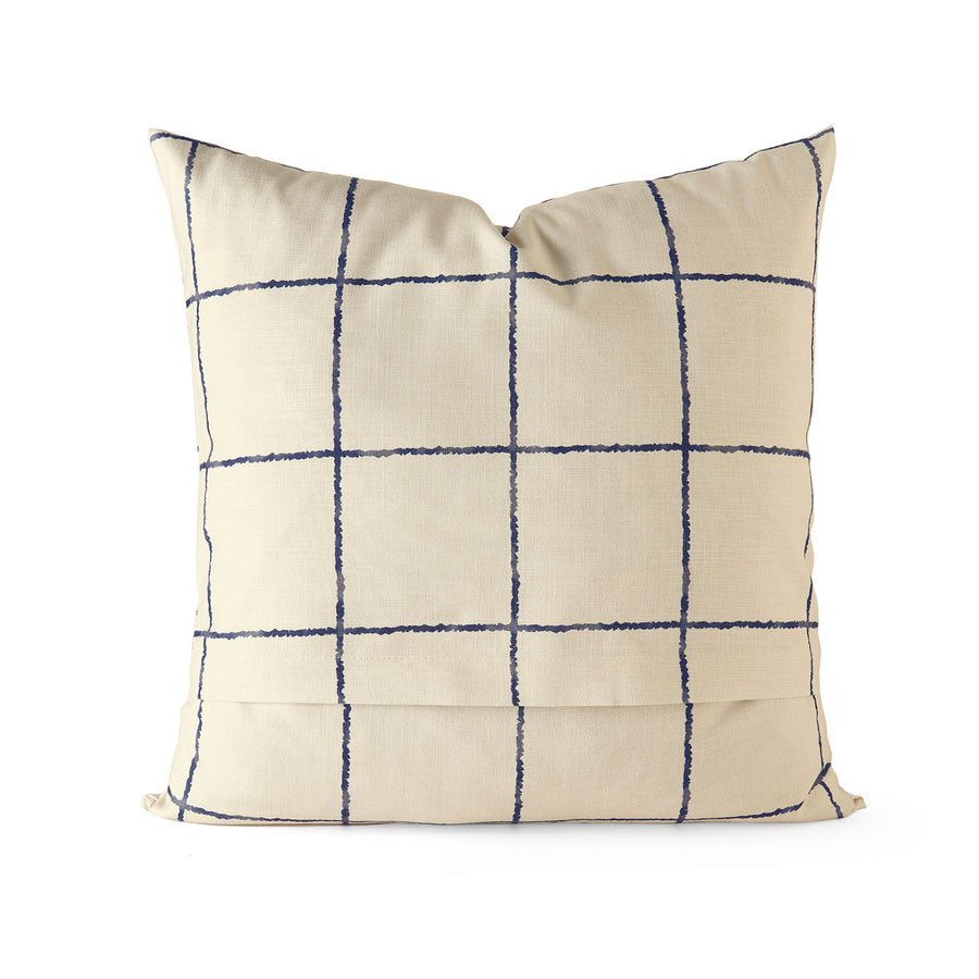 - Window Pane Blue is a classic grid of playful blue lines on neutral greige. This 100% Textured Cotton Cushion Cover pair comes as two cushion covers and fits a standard 18" x 18".