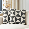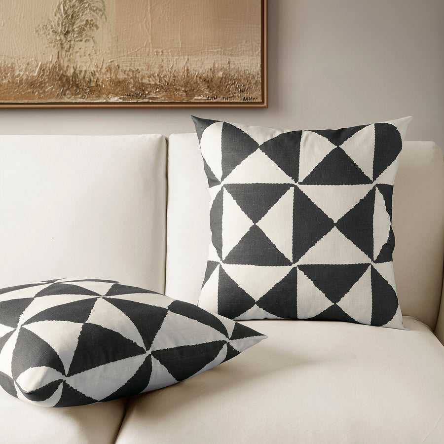 X Block Black Geometric Textured Printed Cotton Cushion Covers - Pair